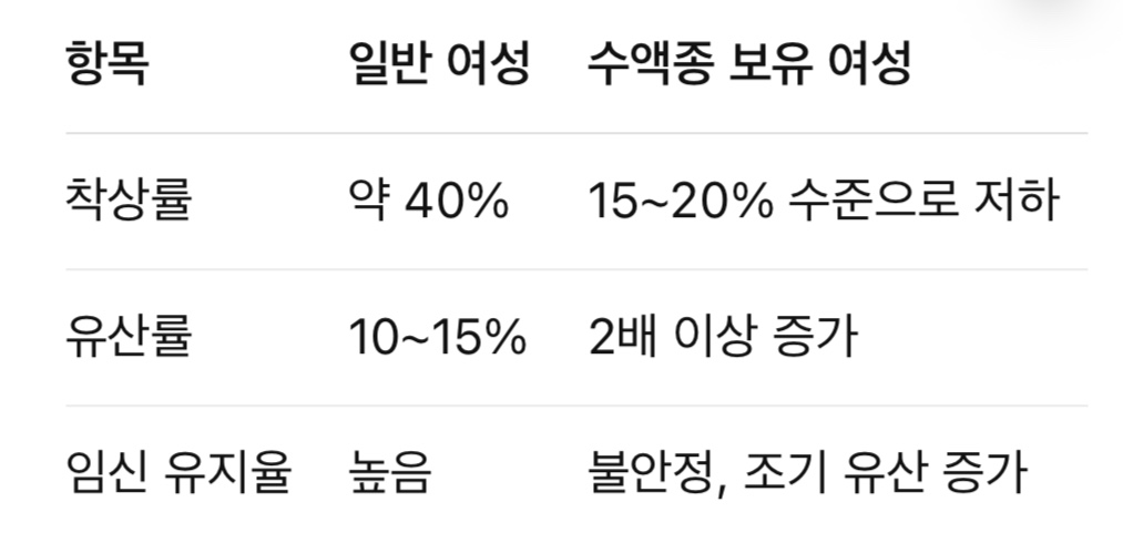 이 수액이 자궁으로 역류하면서 착상에 부정적인 영향을 미칠 수 있으며,