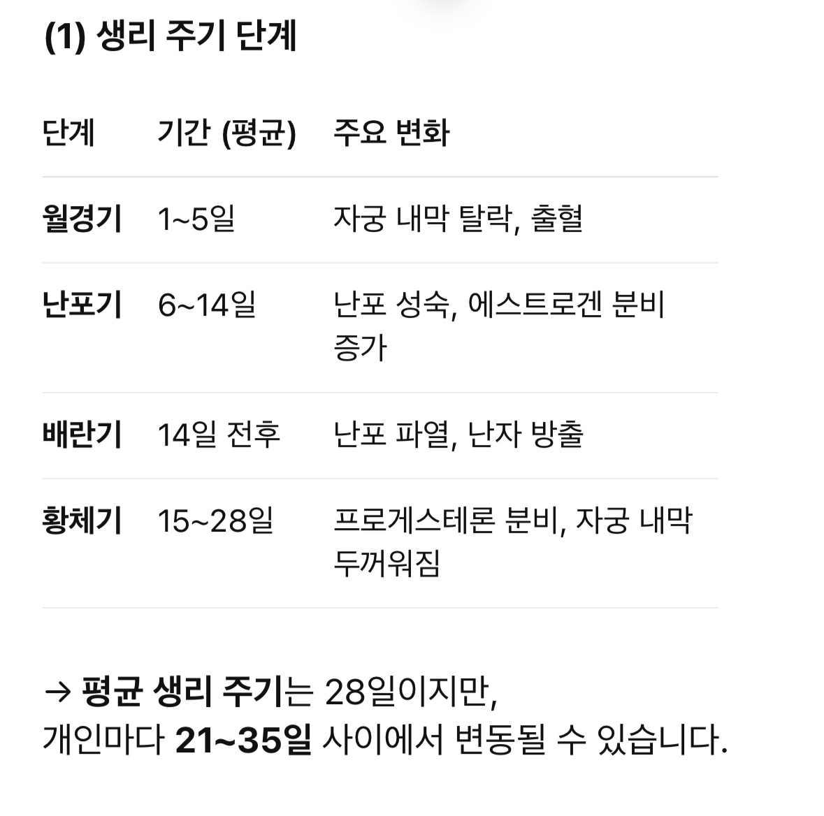 (1) 규칙적인 생리 주기 관리