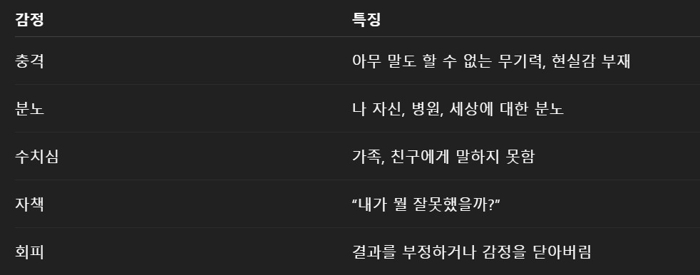 - 병원이나 의료진에 대한 실망감, 불신이 들 수 있습니다.