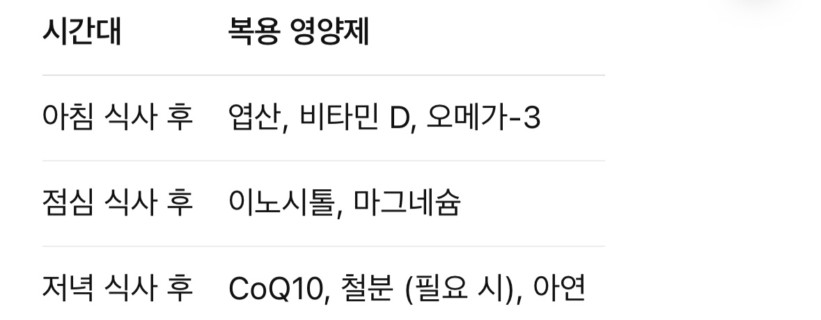 • 영양제는 ‘보조’ 수단입니다. 식단이 기본입니다.