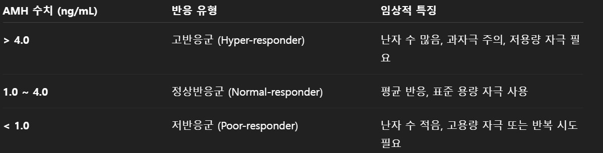 이 과정에서 AMH 수치는 배란 유도제에 대한 환자의 반응을 예측하는 지표로 매우 중요하게 사용됩니다.